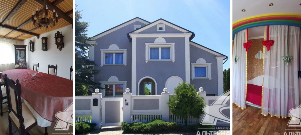 Двухэтажный дом с цоколем 2005 года постройки находится в северо-восточной части Бреста. У него серый цвет с белыми элементами лепнины на фасадах, которые преображают окна и центральный фасад здания. Архитектура дома отличается лаконичной геометрией линий, форм и несущих конструкций, пишут в объявлении. В общей стилистике и расцветке с домом выполнено ограждение. Такой прием концептуально объединяет сооружения в общий ансамбль.