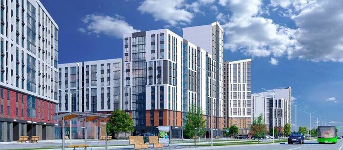 Этот проект существует пока только в качестве рендеров застройщика “Жилстройкомплект”. Никакой информации об общественных обсуждениях мы не нашли. По проекту на участке за перекрестком с улицей Махновича, между строящимся бизнес-центром и заправкой “Славнефть” могут появиться 17-этажные высотки.
