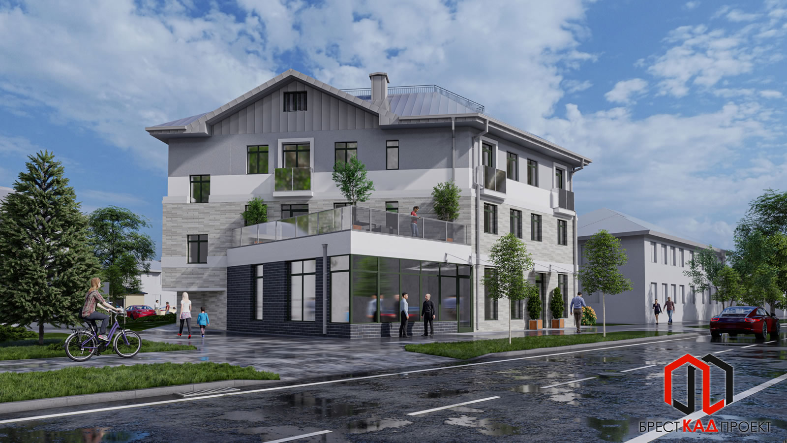 Здесь построят многоквартирные дома со встроенными помещениями. Год назад землю у Гребного канала купила минская компания “Айронинвестпроект” за 2,2 млн евро. 27 сентября председатель Брестского горисполкома Александр Рогачук показал, как будут выглядеть здания.