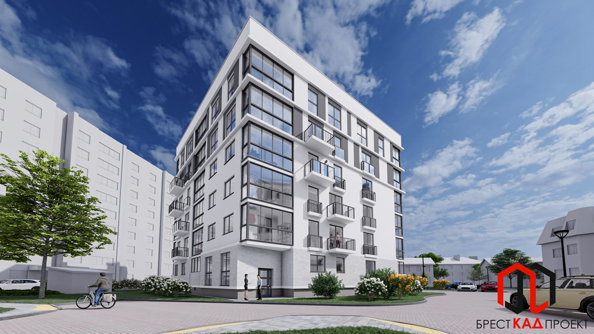 Два новых дома по проекту “Бресткадпроект” появятся рядом с “Хинкальней” на Гоголя. Тот, что в центре проектируемого квартала — шестиэтажный. Подъезд один, вход продублирован пандусом, а в самом доме есть лифт. Во всех квартирах (кроме двух на первом этаже) предусмотрены балконы или лоджии. Потолки по проекту — высокие: 2,7 метра, а на 5-6 этажах предусмотрены окна в пол.