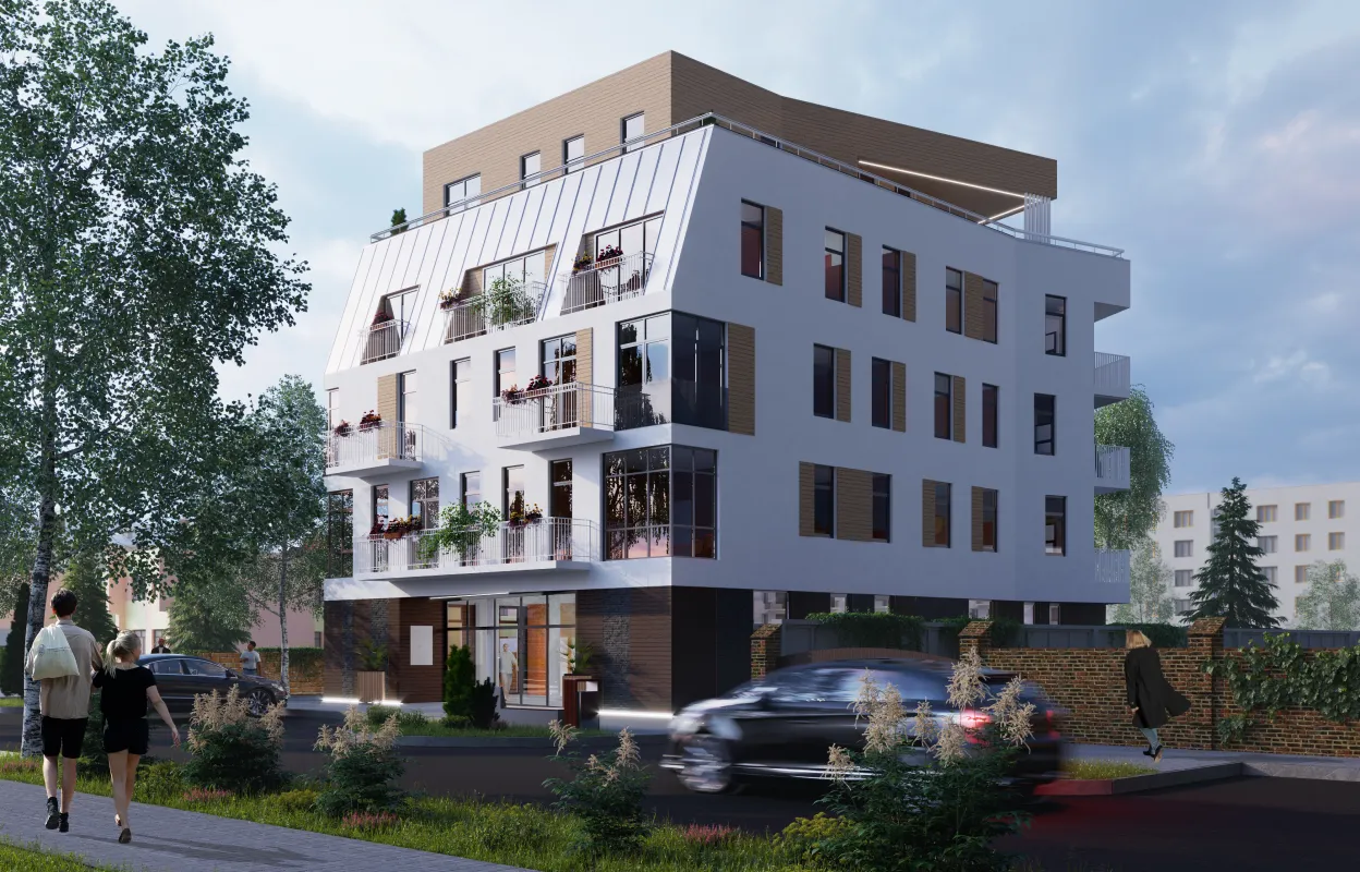 Еще один дом от СК “Аматар”. Здесь построят пятиэтажный дом с лифтом на 10 квартир. На первом этаже будет одно торгово-офисное помещение. На 2,3,4 этажах — по одной 4-х комнатной квартире и по две 3-х комнатные квартир на этаж. На пятом этаже запроектировали пентхаус: трехкомнатная квартира на целый этаж с террасой.