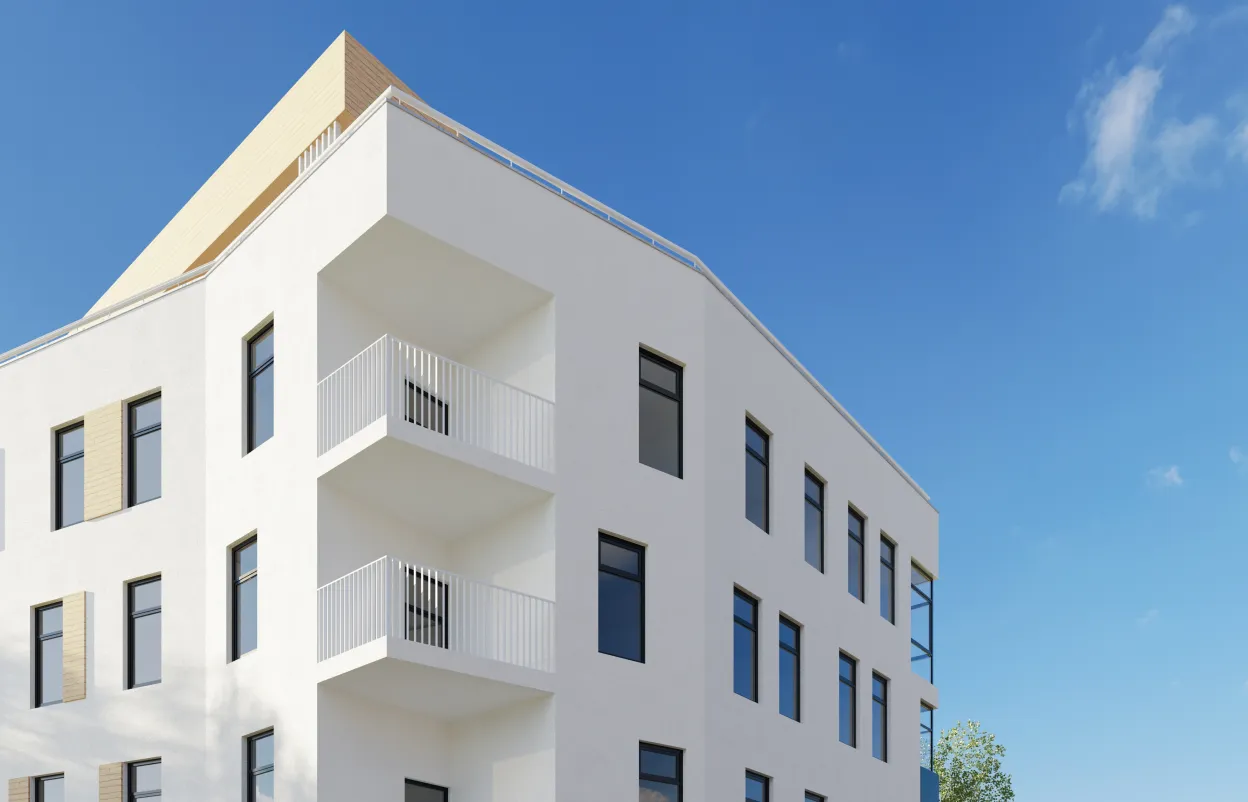 Первый, трехэтажный, построят на улице Советских пограничников. По проекту сохранили облик исторического здания: воссоздали три наружных стены главного фасада и сохранили габариты и месторасположения объекта. Всего в доме будет 6 двухкомнатных квартир, инженерные помещения и комната уборочного инвентаря.