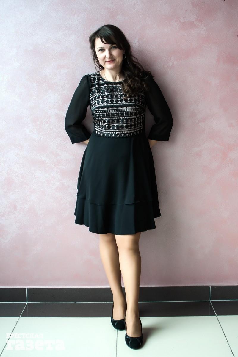 Нарядное платье с юбкой-полусолнцем идеально подошло женственной Наталье. Комбинация нескольких тканей создали актуальный эффект многослойности и разнофактурности.
