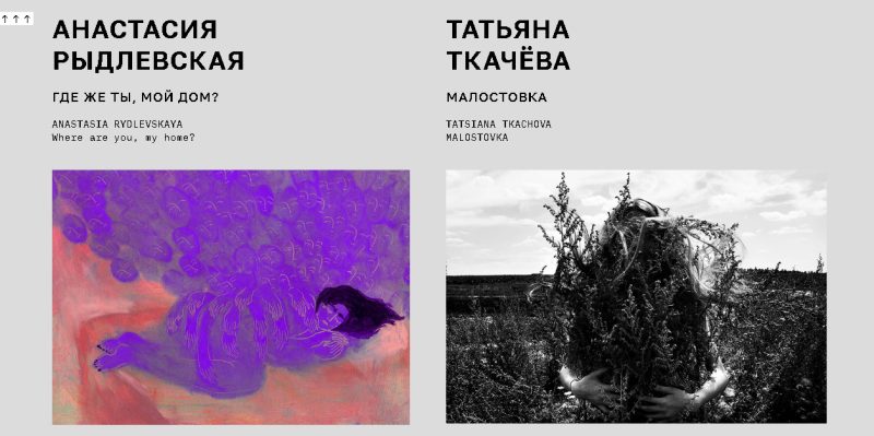 Например, цикл In pairs («В парах») объединяет двух художников в одном выставочном поле: работы Базинато и Цемры, Романа Аксёнова и Маши Святогор, Алеси Житкевич и Леси Пчелки. Это не просто «сайт с картинками», а виртуальное пространство, которое учитывает специфику цифровой среды и, следовательно, предел зрительского внимания.