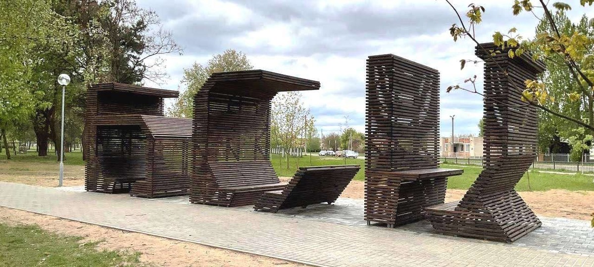 Малые архитектурные формы расположились около ГУО «Средняя школа № 33 г. Бреста». Судя по фото скамейки — деревянные. Почему они сделаны в виде букв «БСК» — тоже не уточняется. Но, возможно, это отсылка к «Берестье-стеклоопт».