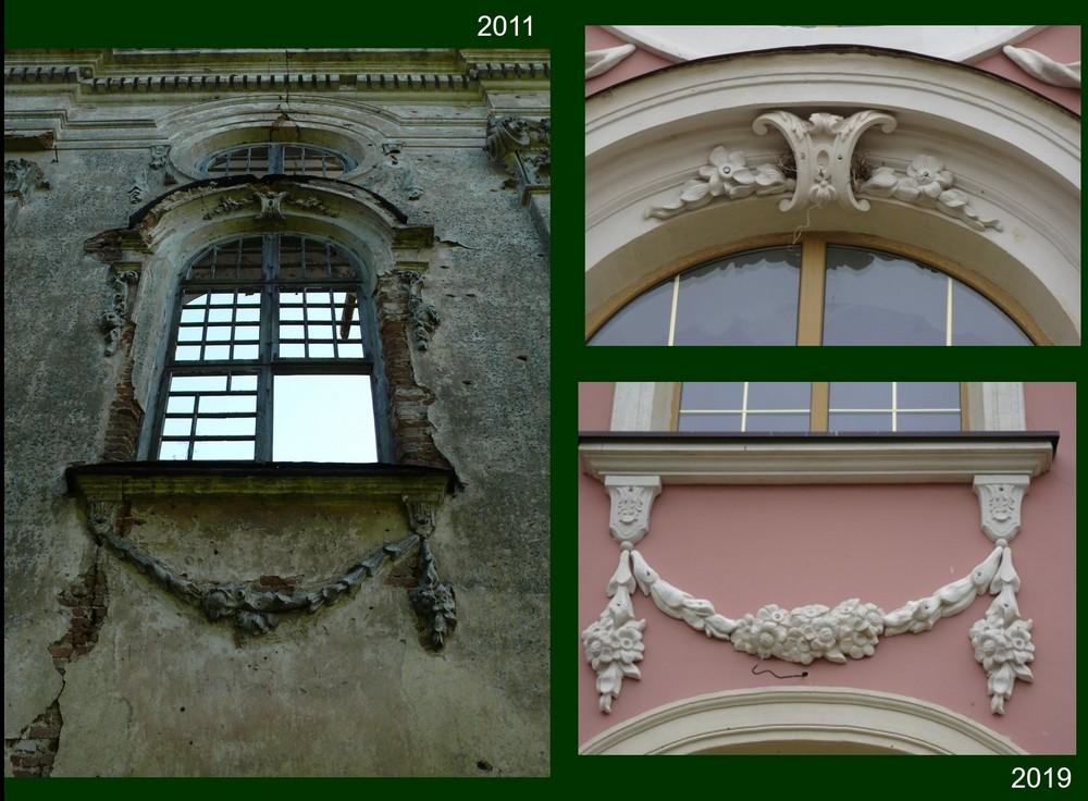 «То, что мы увидели, зовет месть с небес», — считает польский преподаватель истории искусства Мартин Зглинский. — Отличные фасадные украшения, сделанные в мастерской Яна Плерша, полностью сбиты. Их рухнувшие остатки легли в кучу между двумя сараями, где они зарастают мхом и травой. Их заменили грубыми отливами из эпоксидной смолы (или другого материала), которые были прикреплены к фасаду с помощью винтов, грязные торчащие концы которых даже не были замаскированы. Карнизы и профили были реконструированы небрежно. Кабели, торчащие из стен, торчат тут и там. Гипс был заложен плохо, он уже начинает шелушиться. Пластиковые окна не соответствуют первоначальному разделению и совершенно неправильной колористики. Из превосходных скульптур Редлера только один евангелист, после тщательной консервации, стоит на своем первоначальном месте. Скульптура, которая в 2014 году казалась охраняемой и ожидающей консервации, теперь лежит под церковью и врастает в землю. В общем, реликвии абсолютно не защищены, каждый может свободно присваивать фрагменты скульптур или лепнины. Мы не были внутри, но, глядя через стекло в двери (также сделанное ужасно), мы видим, что эффект аналогичен и, возможно, даже более трагичен, чем на фасадах».