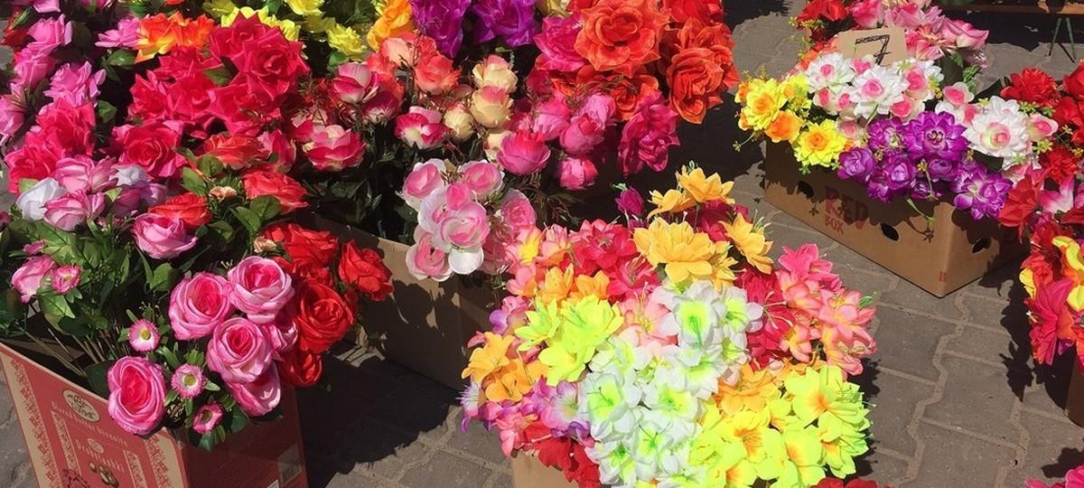 Спрос рождает предложение, поэтому объекты торговли в преддверии Радоницы увеличивают ассортимент искусственных цветов. Многие частники только в этот период ими и торгуют.