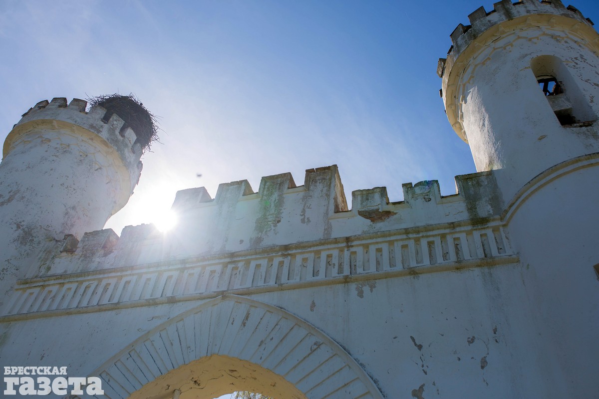 Красивым финалом нашего маршрута стала белоснежная брама в деревне Старые Пески. Этот архитектурный памятник остался от шикарной усадьбы Пусловских, которая до наших дней не сохранилась. Брама решена в виде средневековых крепостных ворот с двумя увенчанными зубцами многоярусными башнями. На ее фоне получаются незабываемые селфи.
