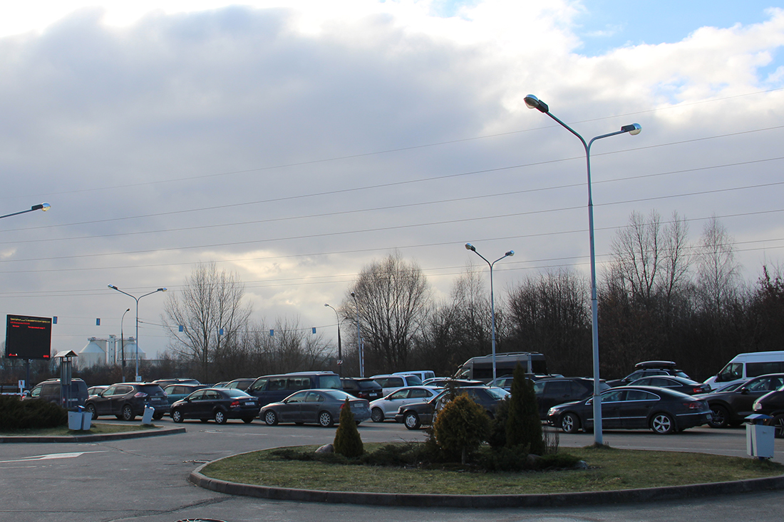 Из-за того, что в накопителе пункта пропуска «Брест» довольно немного мест для легковых автомобилей, основная очередь формируется не в самой зоне ожидания, а на подъезде к ней, не доезжая до шлагбаума с будкой, где проходит регистрация в электронной очереди.