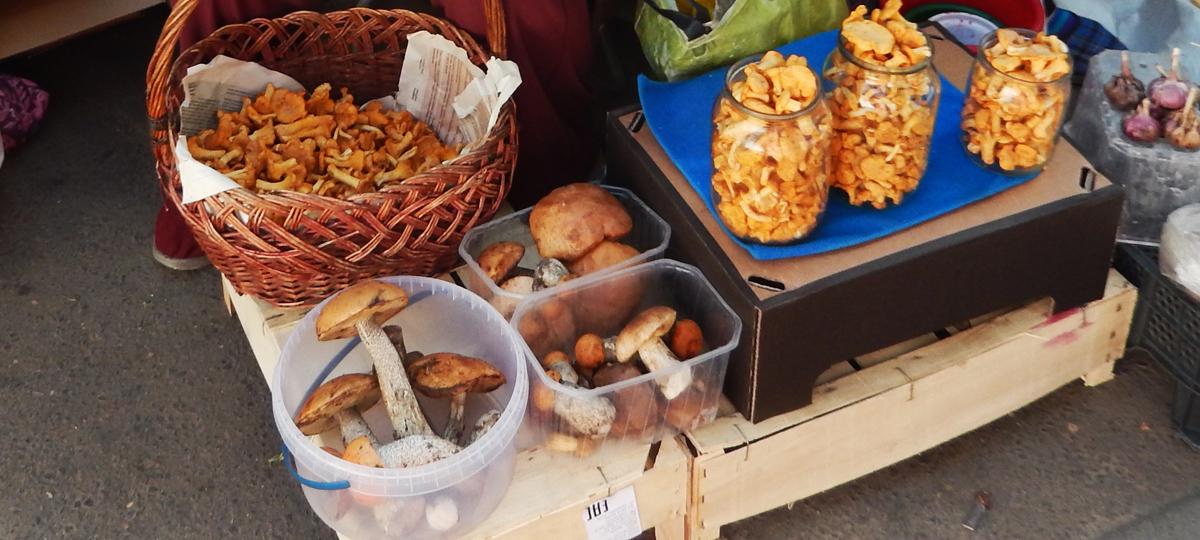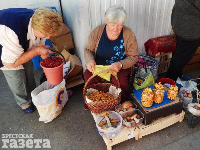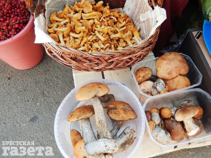 У жительницы д. Подлесье-Радваничское Брестского района Валентины остались лисички и чуток подберезовиков. Как и другие торговцы, лисички она продает банками, а другие грибы — небольшими кучками, цена каждой — по 3 рубля.