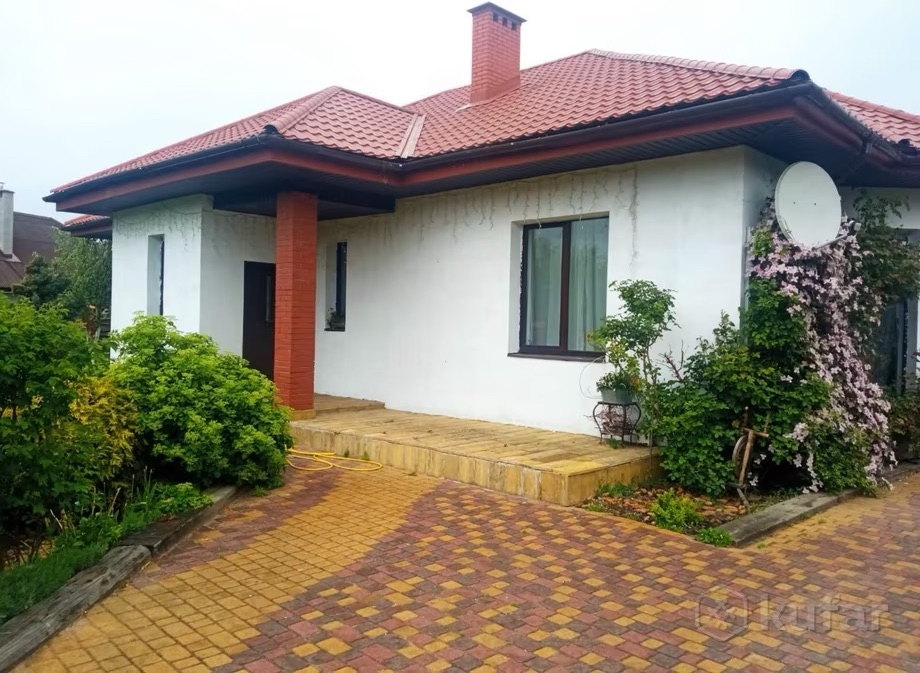 Дом блочный, кровля выполнена из металлочерепицы. Общая площадь – 210 м², а жилая 150 м². На территории в 10,5 соток расположены баня, беседка и искусственный пруд.