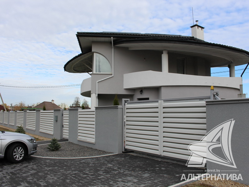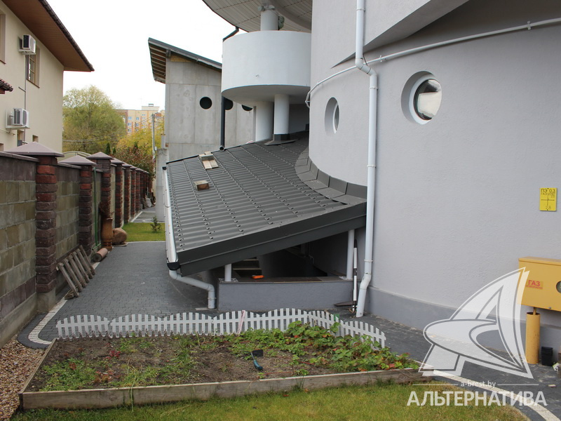 Материал стен – стружечная плита и железобетонные панели. Дом утеплен пенополистиролом, а фасад отделан штукатуркой «американка». Кровля выполнена из металлочерепицы, окна ПВХ. Общая площадь – 357,2 кв.м, а жилая 73,86 кв.м.