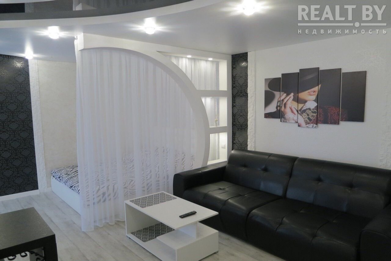 Эта 1-комнатная квартира также сдается в аренду в центре Брест. Она находится в доме повышенной комфортности в тихом месте, где даже есть шлагбаум на въезд во двор.