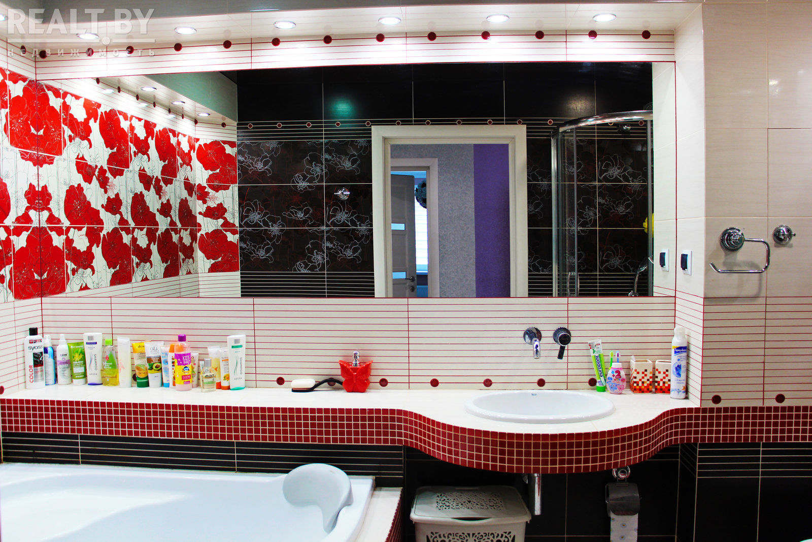 Еще одна фишка этой яркой квартиры — утепленная лоджия-кабинет с оборудованным рабочим местом. А еще в большом совмещенном санузле есть не только ванна, но и душевой кабиной.