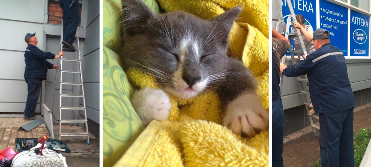 Стоит отметить, что о спасении котенка знали и в городском отделе по ЧС. Его сотрудники были на связи, давали дельные советы и обещали подъехать, если без их помощи достать малыша не получится. Получилось.