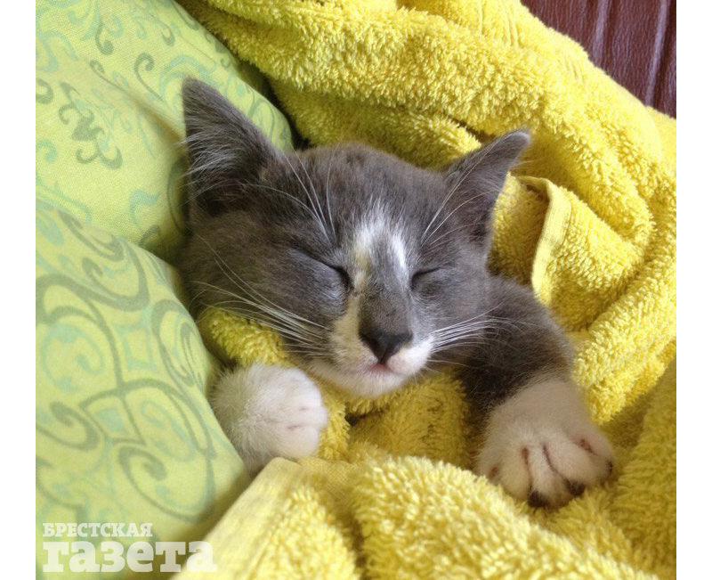 «Мы с мамой шли в магазин и, подходя к главному входу, услышали душераздирающее мяуканье котенка. Сначала не могли понять, откуда исходит этот звук, но потом догадались, что котик находится под обшивкой магазина», — рассказывает брестчанка Анастасия Гакамская.