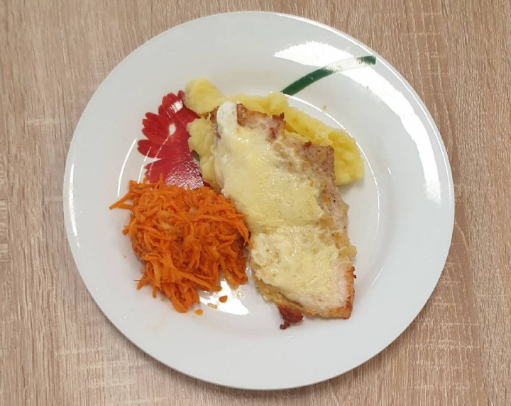 «Хочу сказать, что сын всегда очень доволен едой из столовой. Стоит такой обед 9 злотых [5,1 рубля]. Обычно на второе мясо, как сын говорит, «котлета с кулак». Но бывают дни, когда на второе что-то сладкое. Вот, например, такая запеканка», — говорит отец.