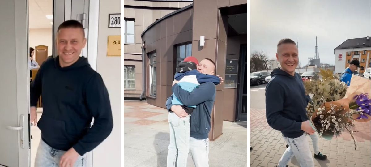 Ирина Бахановская 15 марта опубликовала в Instagram видео, на котором Сергей Чеберяк счастливый выходит из Дома правосудия в Бресте, а его встречают семья и друзья. Она написала в посте, что это случилось 13 марта.