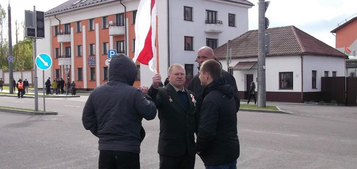 По словам брестского правозащитника Владимира Величкина, 9 Мая ветеран-афганец Александр Сахарук надел костюм с боевой наградой, прикрепил бело-красно-белую ленту на левый лацкан пиджака и пошел на место сбора участников митинга, посвященного Дню Победы, на пересечении улицы Ленина и проспекта Машерова. Когда колонна двинулась в сторону Брестской крепости, он поднял бело-красно-белый флаг и какое-то время шел с ним за «Бессмертным полком».