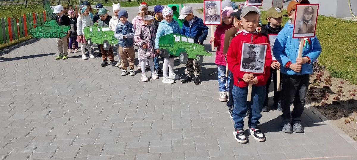 «Торжественным маршем воспитанники вместе с педагогами прошли в строю и поприветствовали всех участников праздника. Воспитанники старшей группы несли портреты участников Великой Отечественной войны, приняли участие в акции «Беларусь помнит»», — описывает происходящее местная районка.