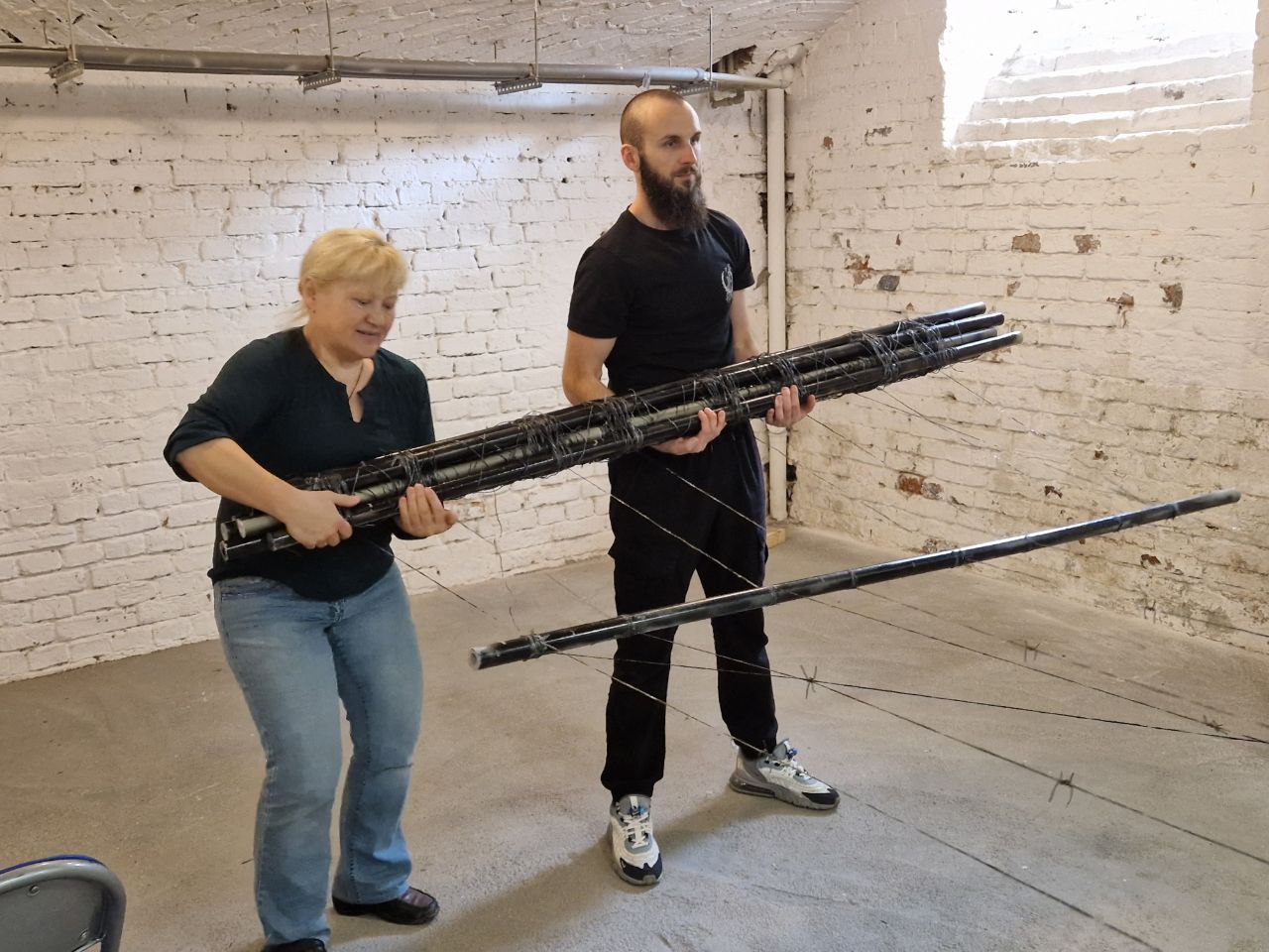 Впрочем, команда активистов еще не решила, как именно выстроить цепь солидарности. Согласовывая акцию с властями Польши, они зарегистрировали цепь на 500 метров. А длина импровизированного ограждения с колючей проволокой в сумме составляет 99 метров: три участка по 33 метра. Конструкция настолько массивная, что нужно минимум 48 человек, чтобы держать ее.