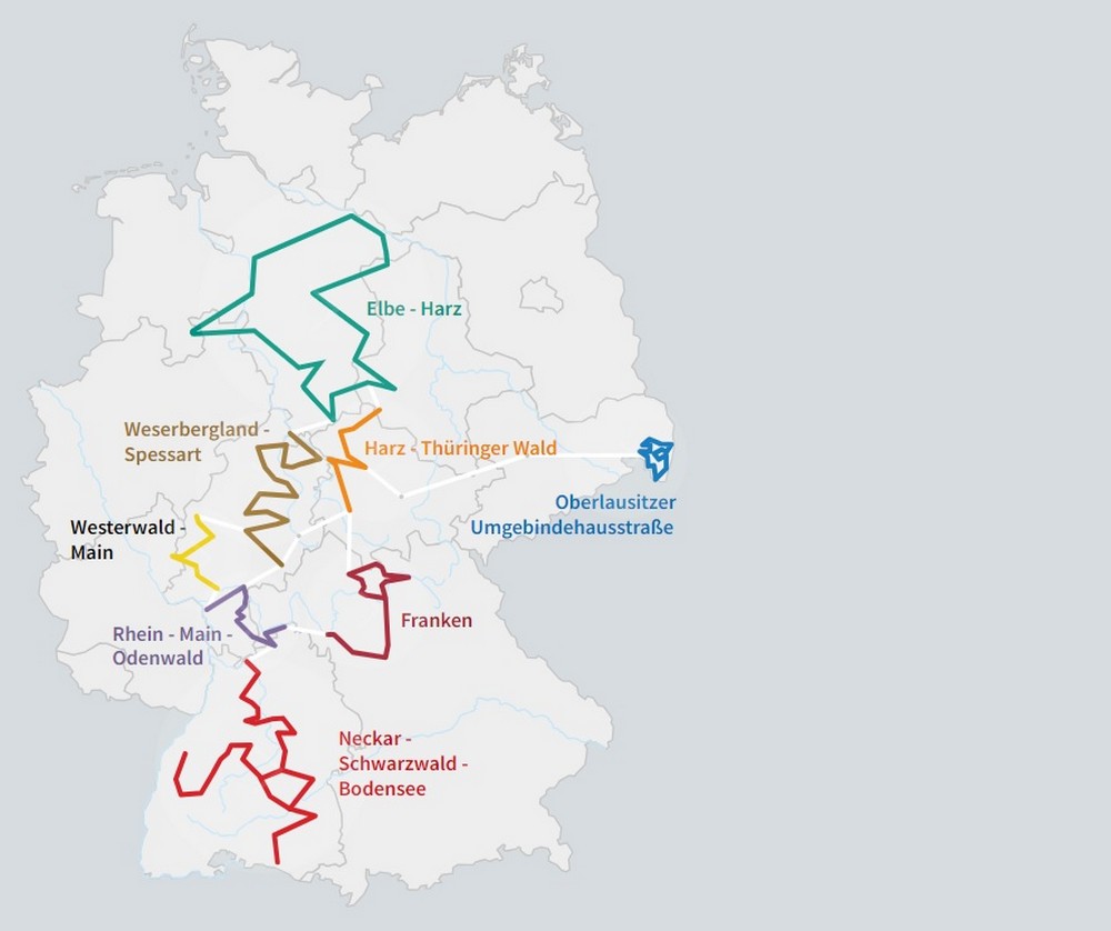 Он проходит через всю страну от северогерманского города Штаде на Эльбе до Мерсбурга на Боденском озере. Общая протяженность составляет около 3 500 километров — по территории Нижней Саксонии, Саксонии-Анхальт, Саксонии, Гессена, Тюрингии, Баварии и Баден-Вюртемберга.