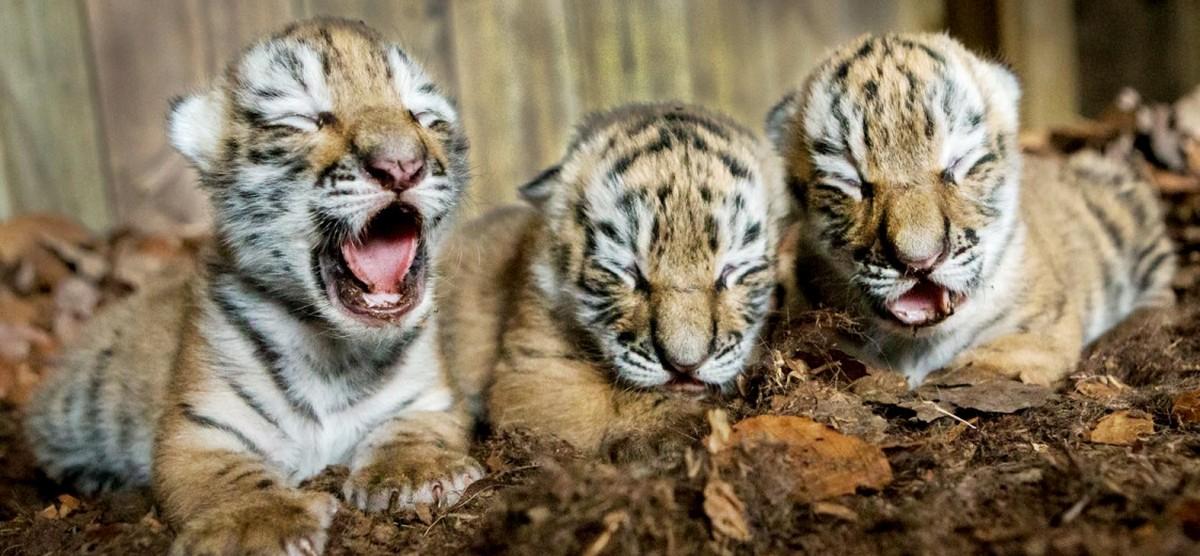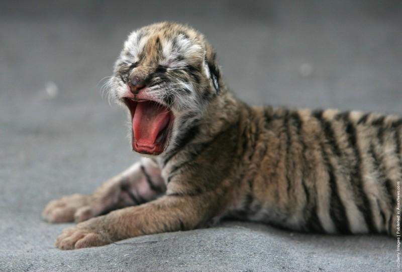 Тигрята рождаются слепыми, беспомощными, весом 1,3 — 1,5 кг, но уже примерно через 6 — 8 дней прозревают. Первые 6 недель детеныши питаются молоком матери. В возрасте 8 недель они способны следовать за матерью и покидают логово.