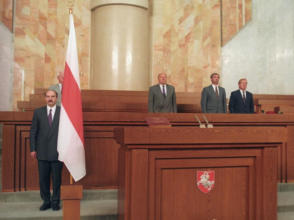 В 1991 году, после распада СССР, БЧБ-флаг стал государственным флагом независимой Беларуси. Больше трех лет он развевался над Администрацией президента, Домом правительства и другими госучреждениями. Именно под ним свою первую президентскую присягу давал Александр Лукашенко.