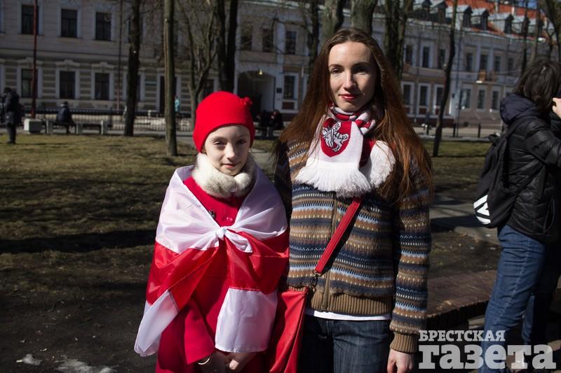 Біёлаг Кацярына прыйшла на свята з 9-гадовай дачкой Міхалінай. Сцяг, які накінула на плечы дзяўчынка, яны шылі самі. «БНР — гэта першая спроба стварыць сапраўды незалежную беларускую дзяржаву, таму стогадовы юбілей — гэта важная дата», — расказала Кацярына. На думку жанчыны, свята — добрая нагода распавесці дзецям пра гісторыю краіны. У Міхаліны ў наступным годзе будзе «Мая радзіма — Беларусь», таму маці і дачка рыхтуюцца, чытаюць кніжкі.