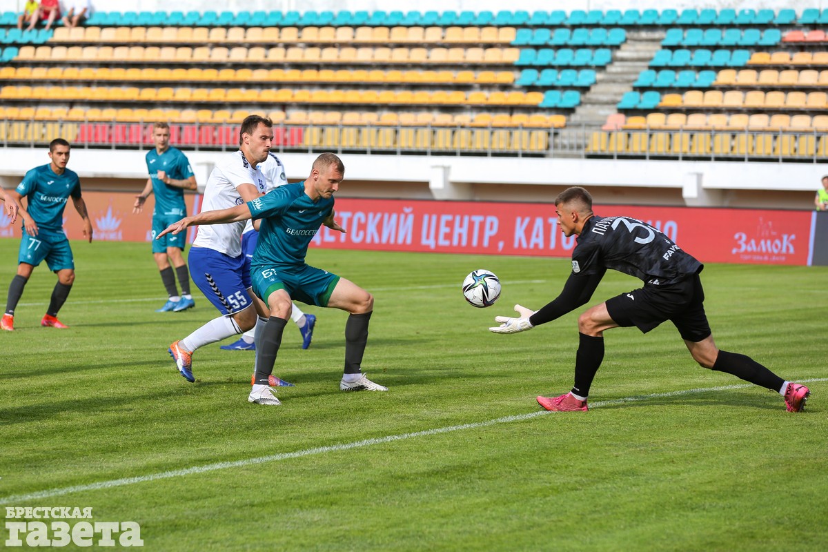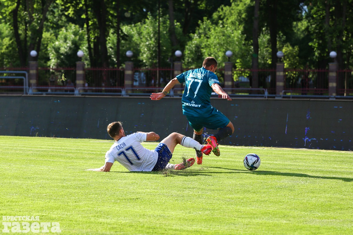 После этого «Рух» ненадолго пришел в себя и провел несколько атак, в которых отличиться мог Павел Савицкий. Затем гости снова прижали хозяев и дважды за пару минут пробили в штанги. В этих эпизодах брестчанам повезло. В итоге на перерыв команды ушли без забитых голов.